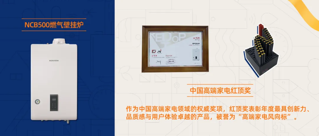 凭借出色的节能性能与卓越体验,2018年12月,NCB500燃气壁挂炉荣获第10届中国高端家电红顶奖,成为清洁供暖领域高端品质与节能科技结合的代表。这一荣誉,是对庆东纳碧安坚持用户导向与精工制造理念的有力印证。