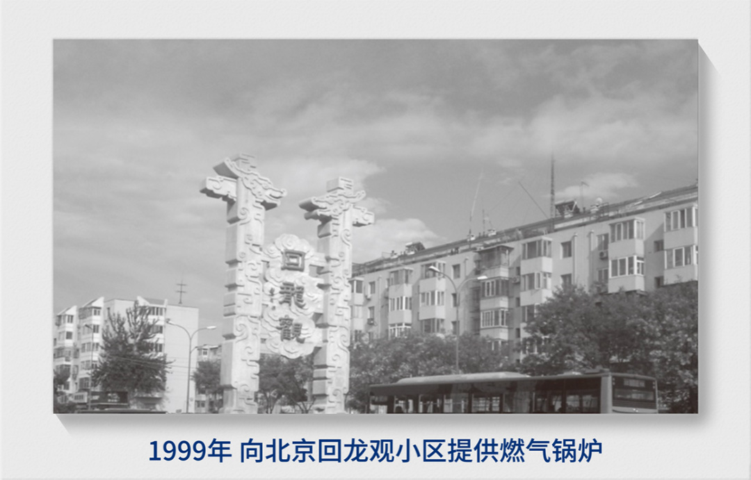 1999年,向北京首个分户采暖小区-回龙观提供燃气锅炉。
